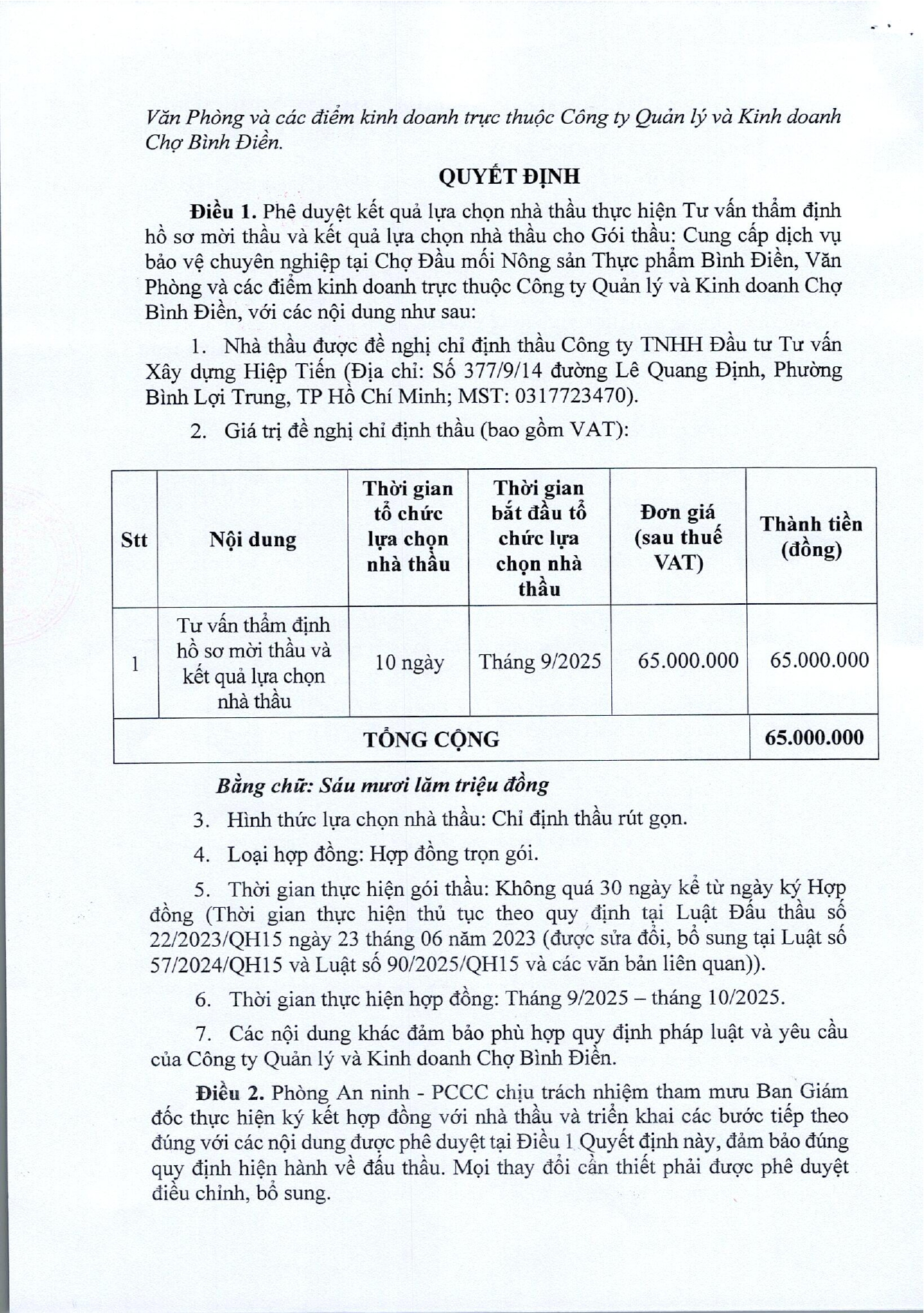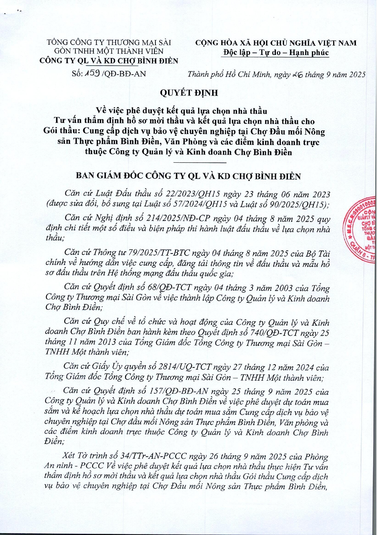 QUYẾT ĐỊNH 158 PHÊ DUYỆT KQCDT TƯ VẤN LẬP HSMT