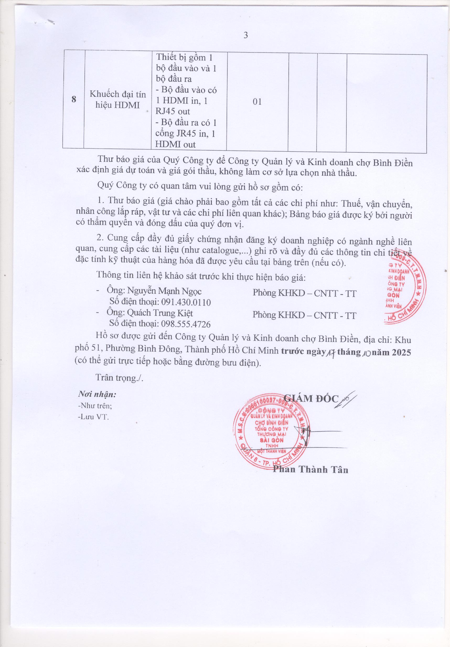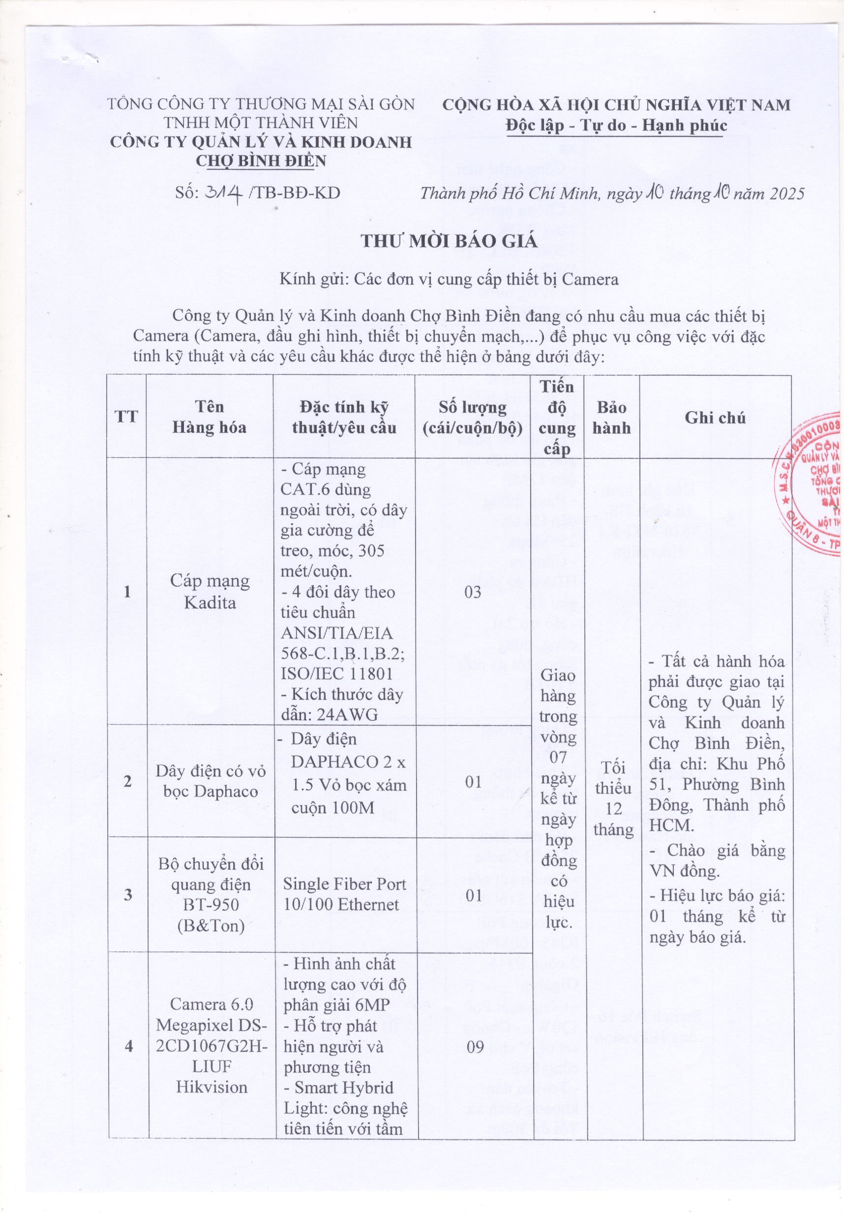THƯ MỜI BÁO GIÁ SỐ 316.TM-BĐ-TC