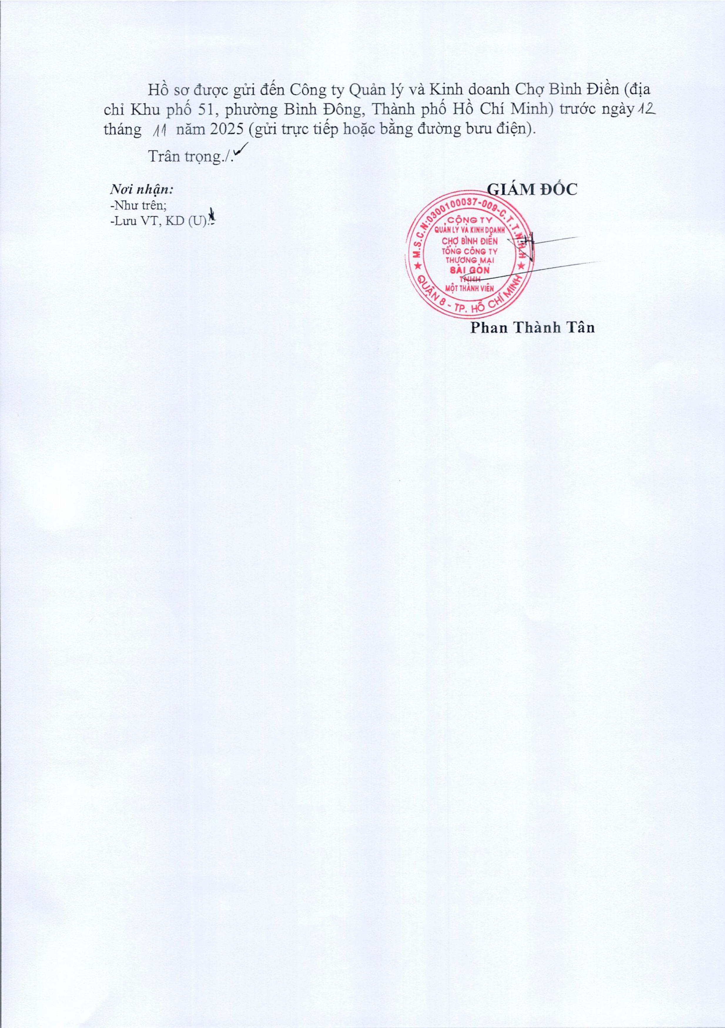 THƯ MỜI BÁO GIÁ Về việc báo giá dịch vụ Thi công hoàn thiện mặt bằng Chợ Hoa Tết Bính Ngọ năm 2026 tại Chợ Đầu mối NSTP Bình Điền