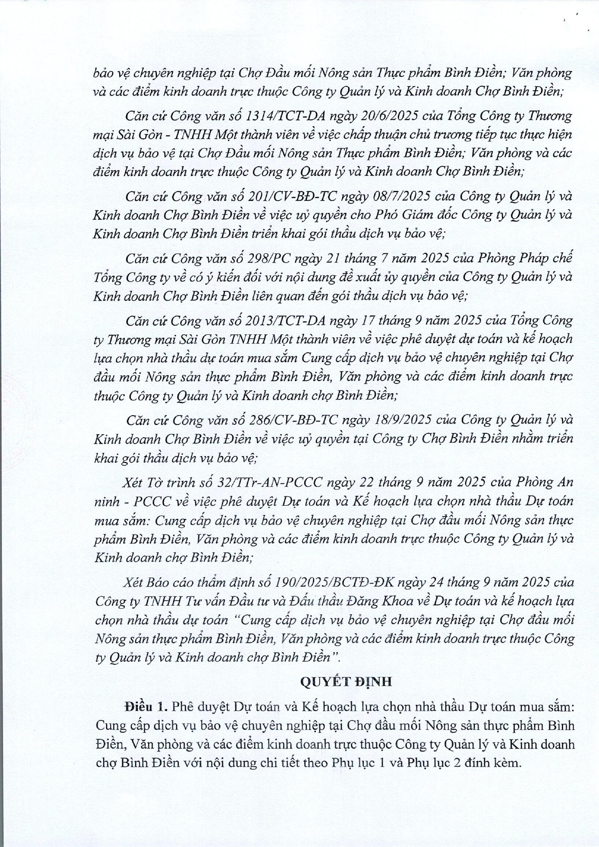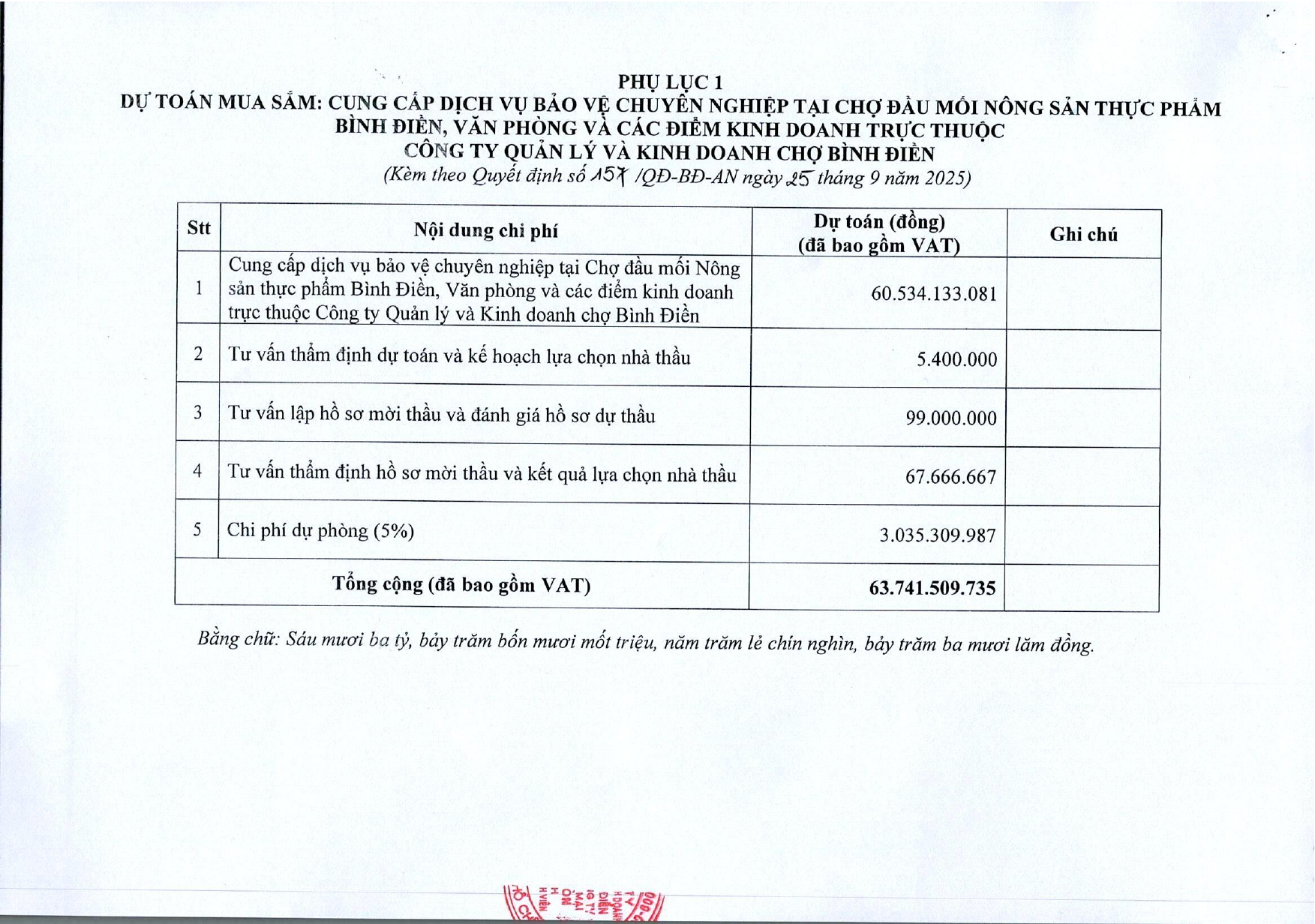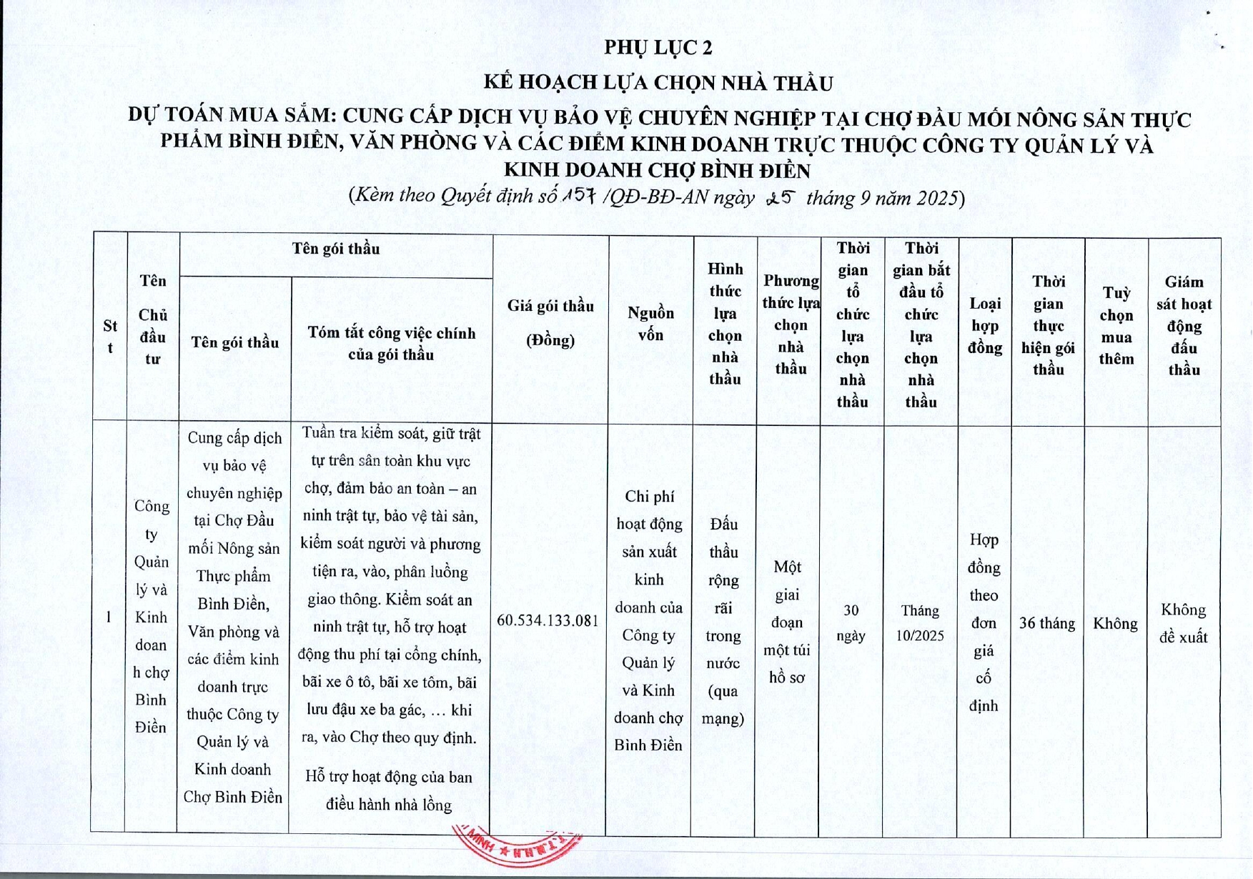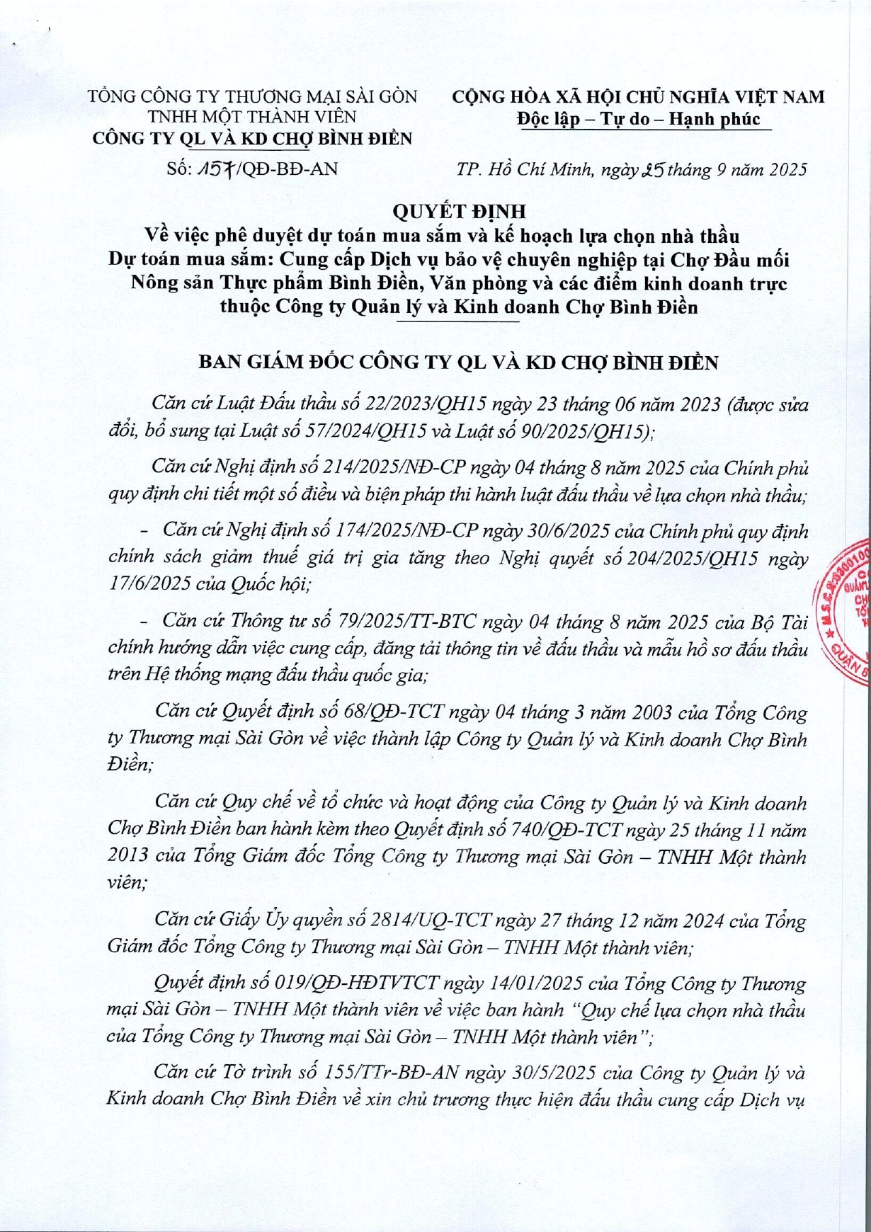 Quyết Định 157 Về việc phê duyệt dự toán mua sắm và KHLCNT gói dịch vụ bảo vệ chuyên nghiệp