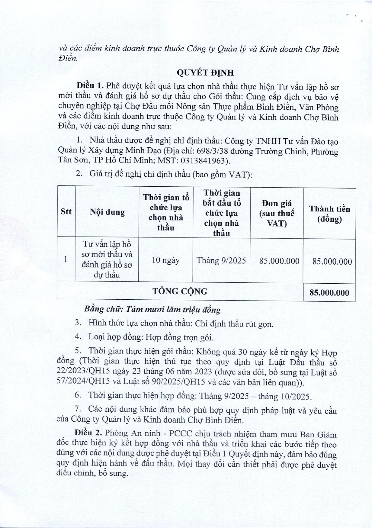 QUYẾT ĐỊNH 158 PHÊ DUYỆT KQCDT TƯ VẤN LẬP HSMT