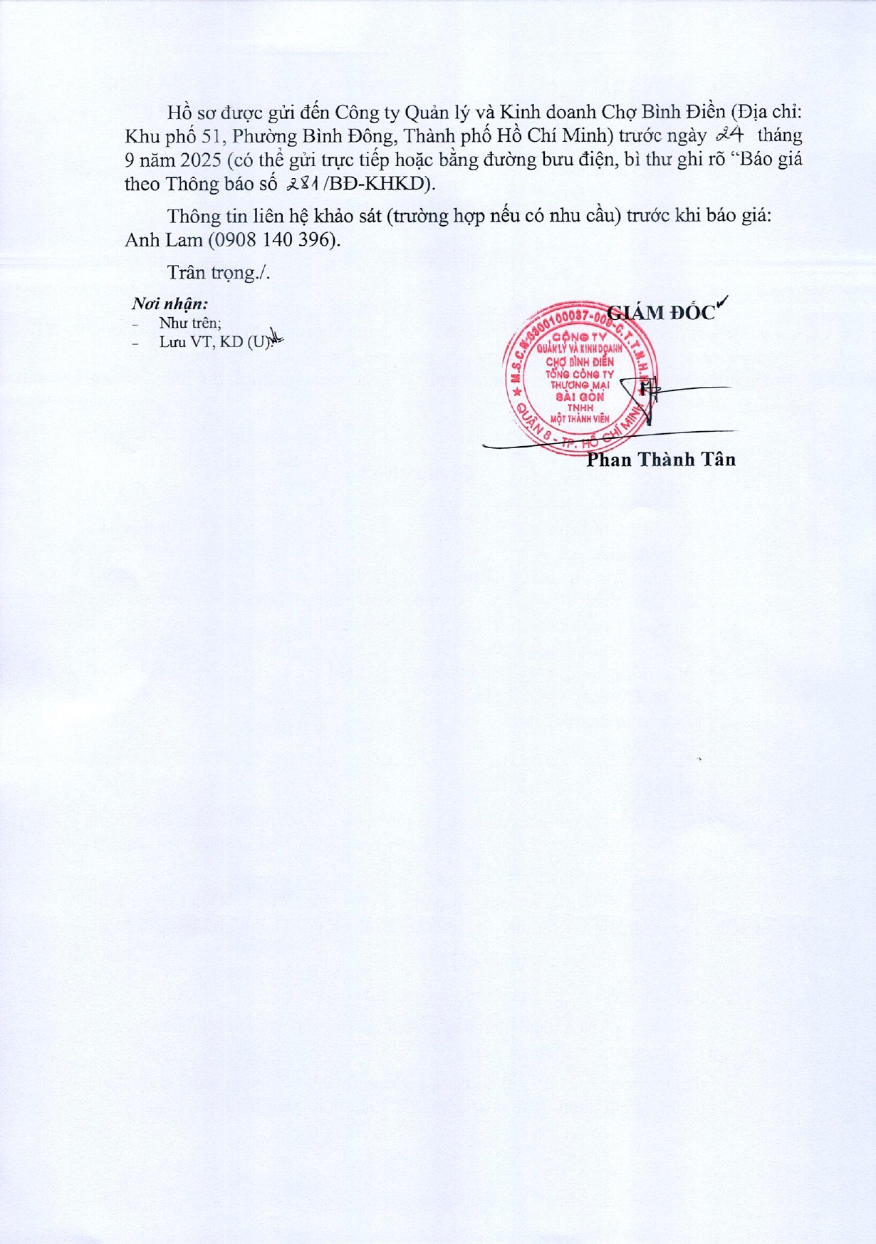 THƯ MỜI BÁO GIÁ SỐ 316.TM-BĐ-TC