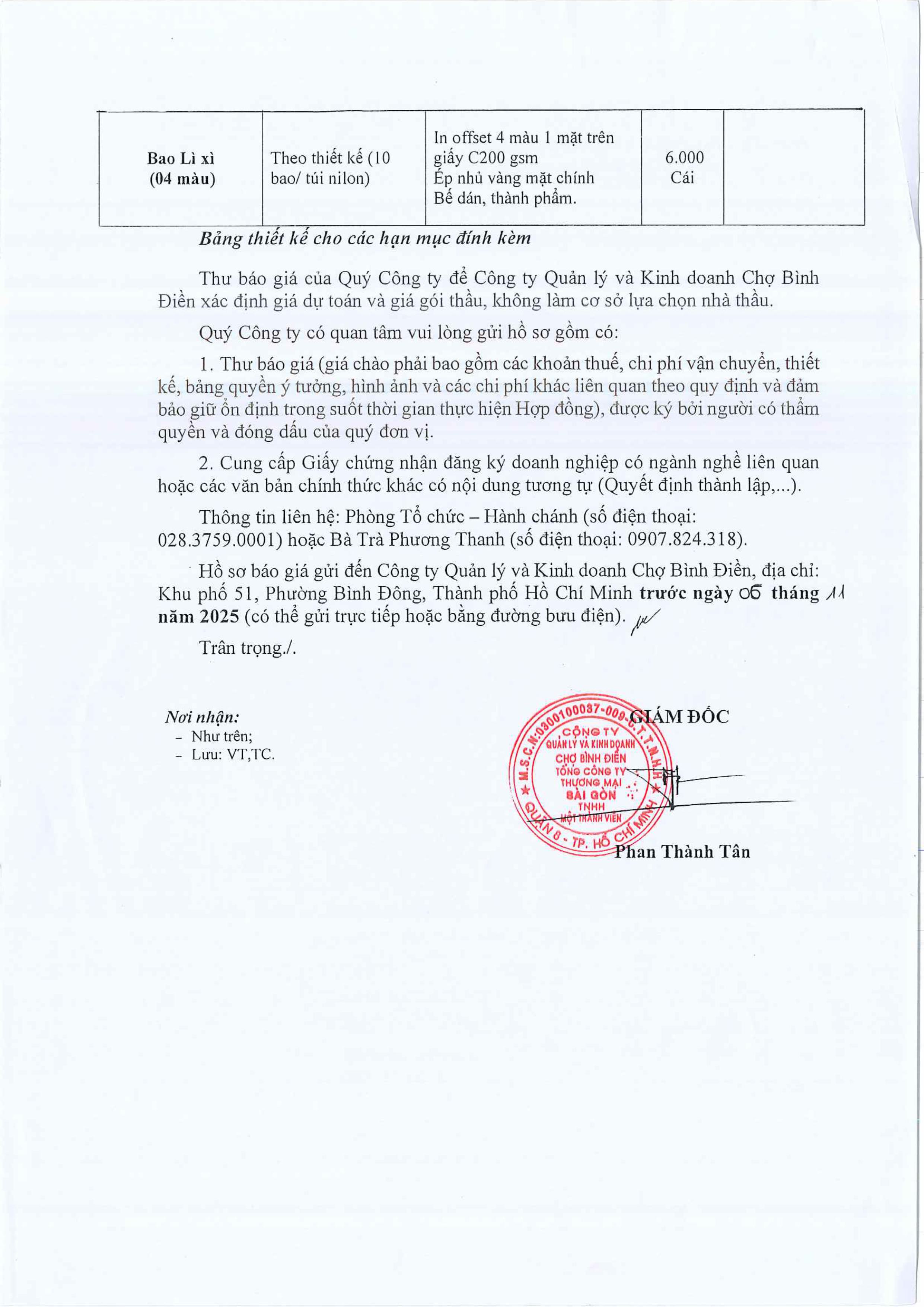 THƯ MỜI BÁO GIÁ Về việc tư vấn thẩm tra dự toán gói thầu " Cung cấp dịch vụ thu phí không dừng tại Trạm thu phí Chợ đầu mối NSTP Bình ĐIền "