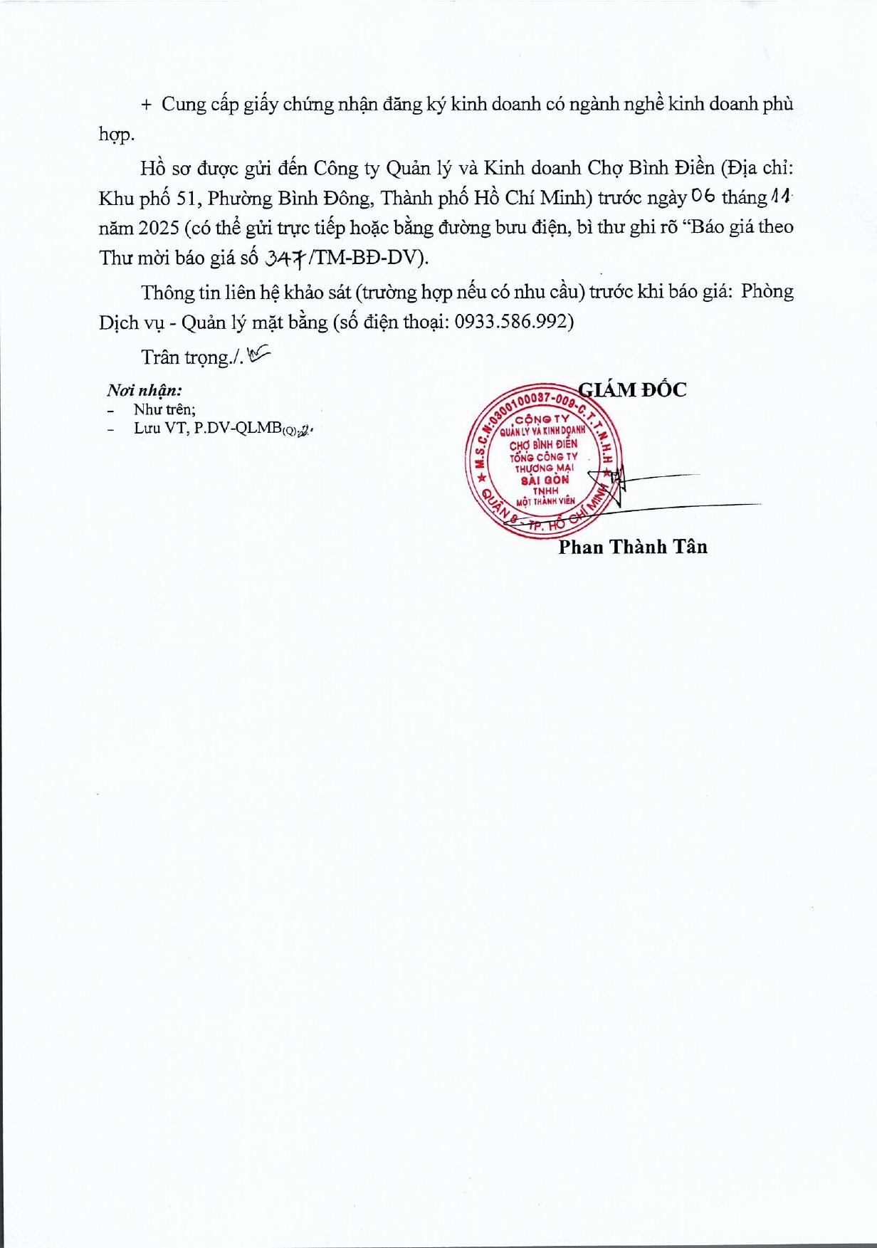 THƯ MỜI BÁO GIÁ Về việc báo giá dịch vụ Thi công hoàn thiện mặt bằng Chợ Hoa Tết Bính Ngọ năm 2026 tại Chợ Đầu mối NSTP Bình Điền