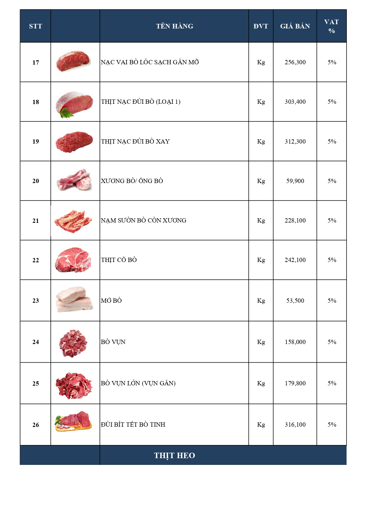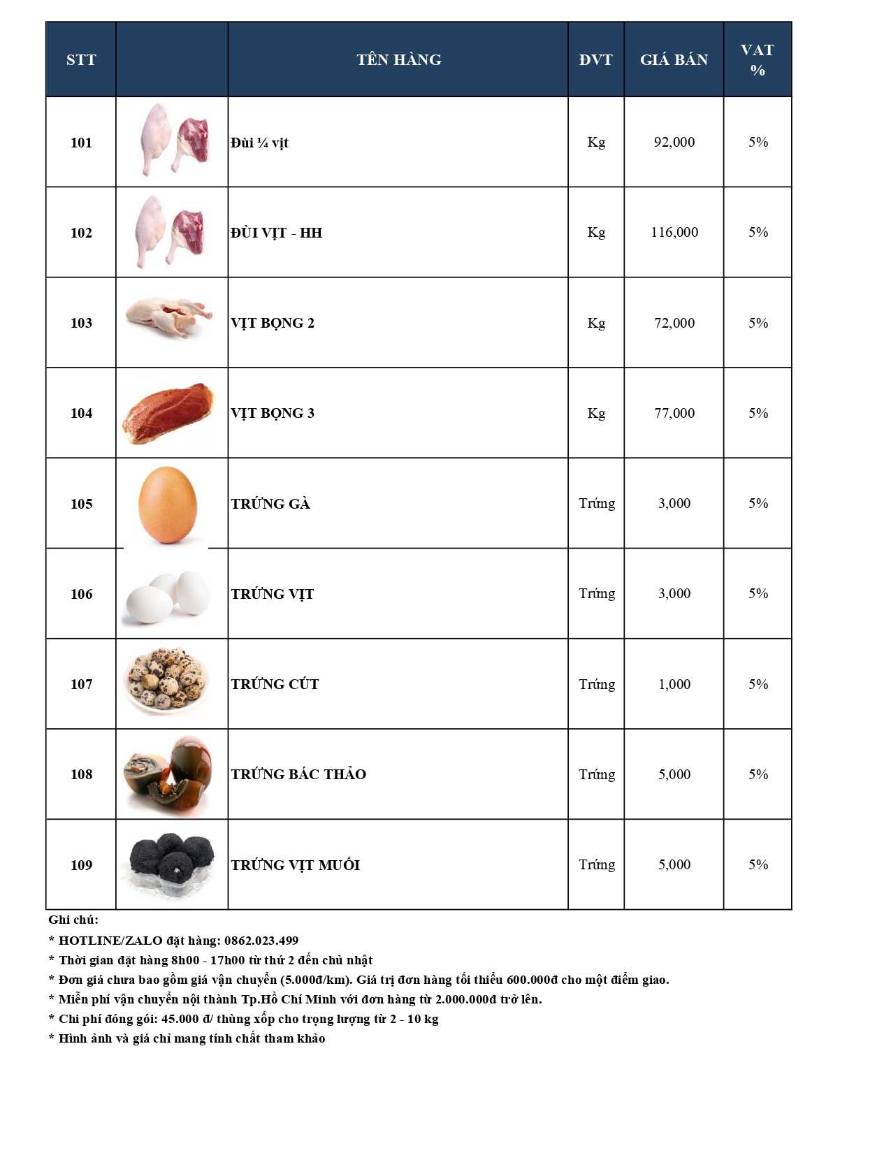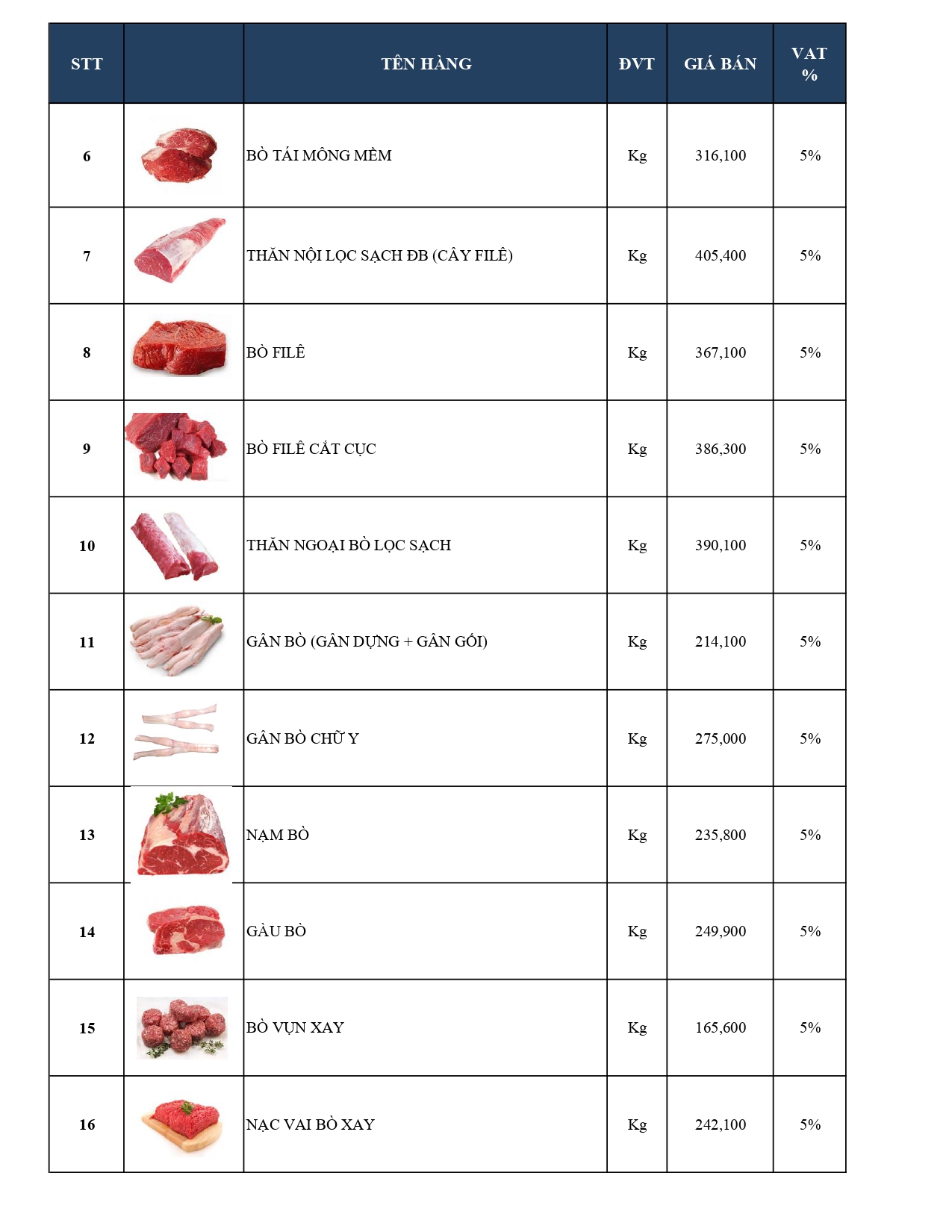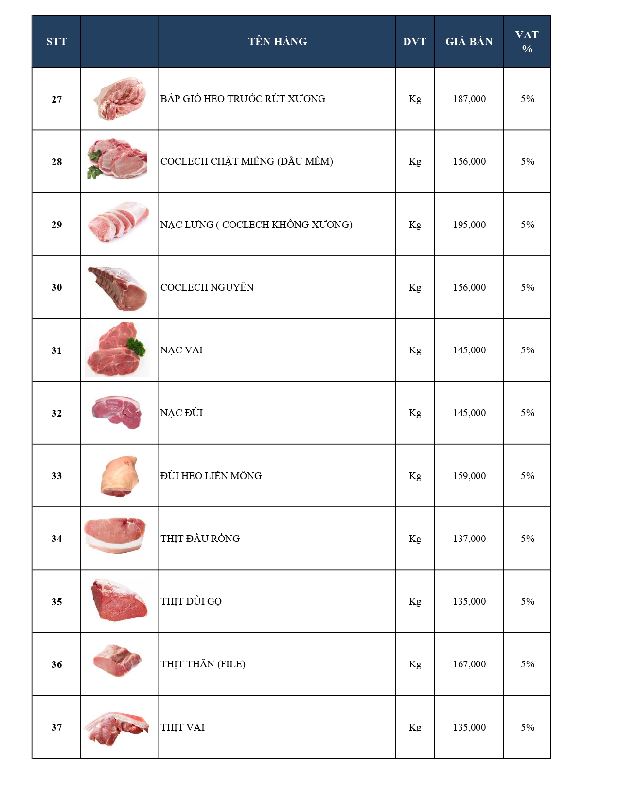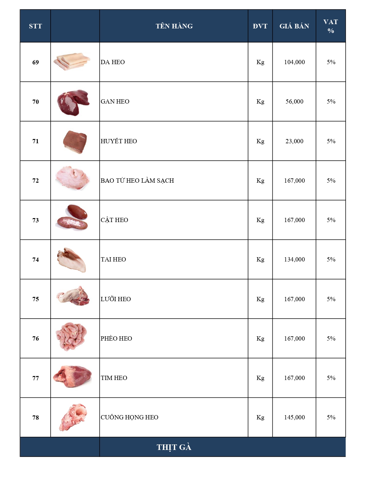 -Bảng giá Thủy hải sản Cao cấp