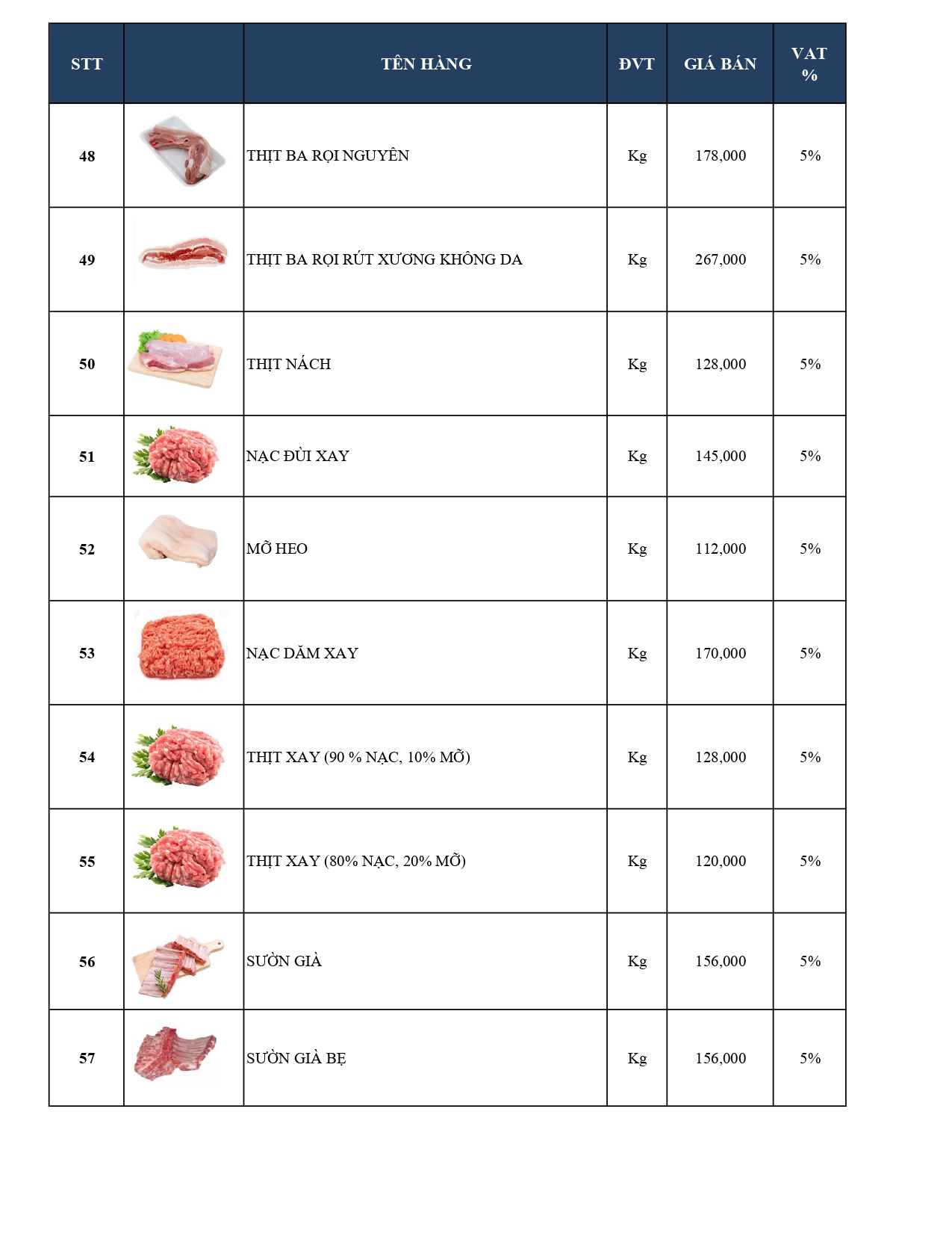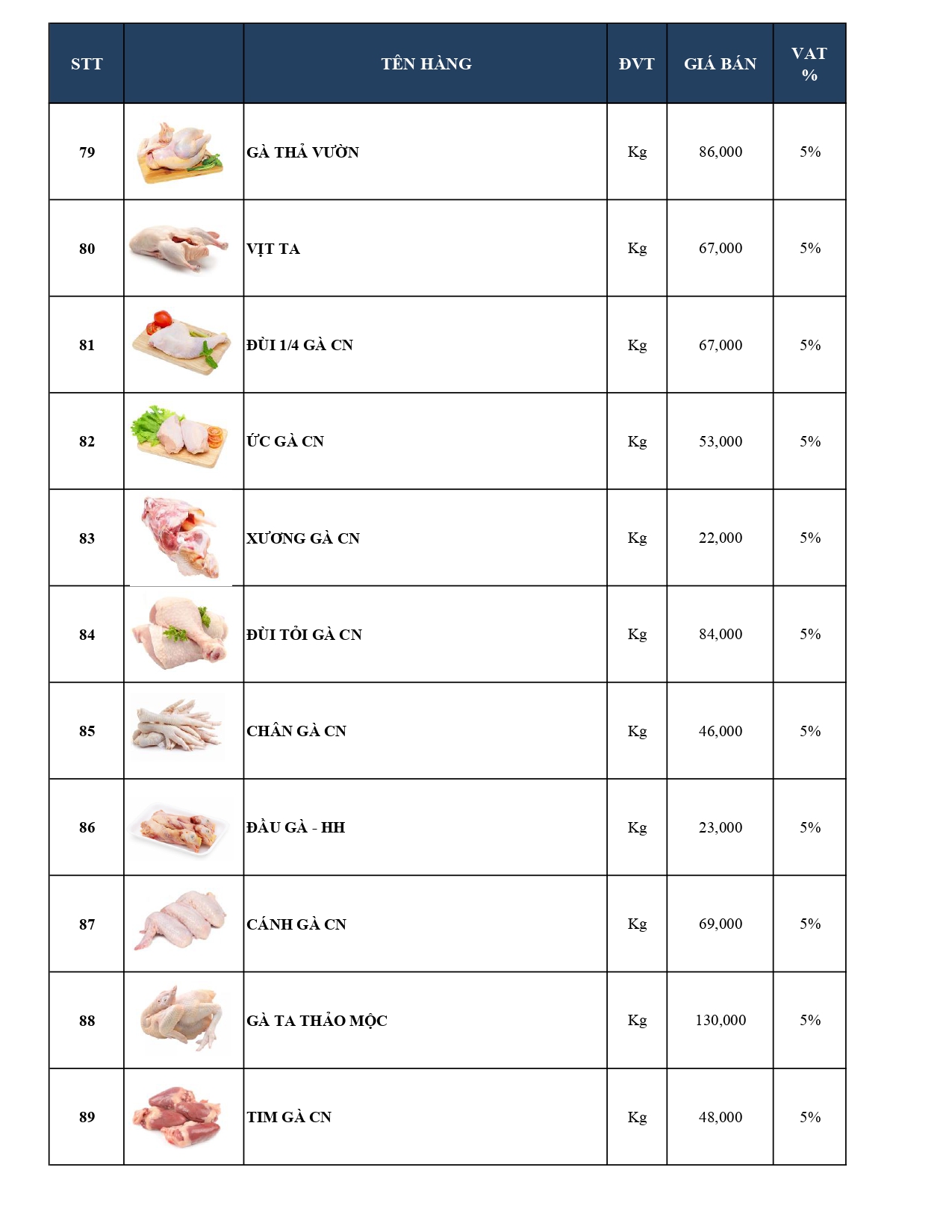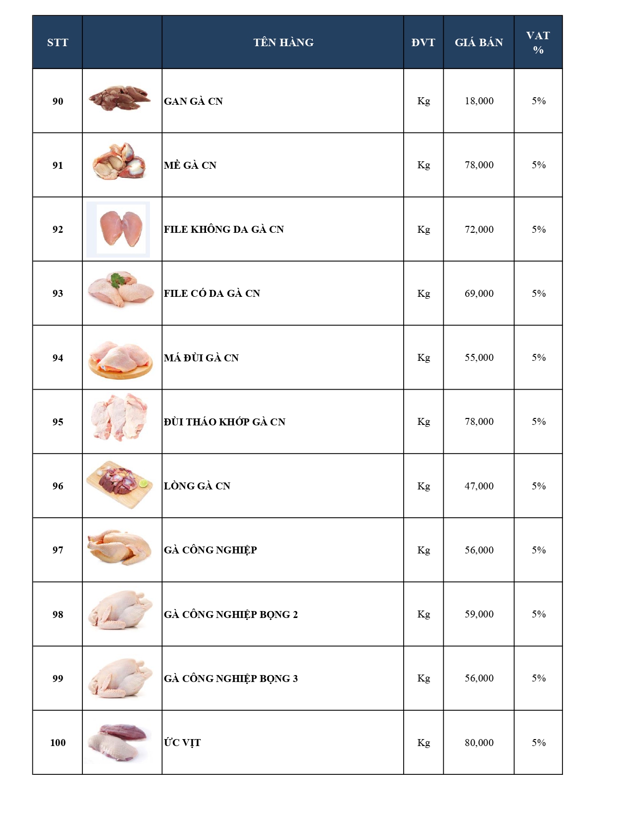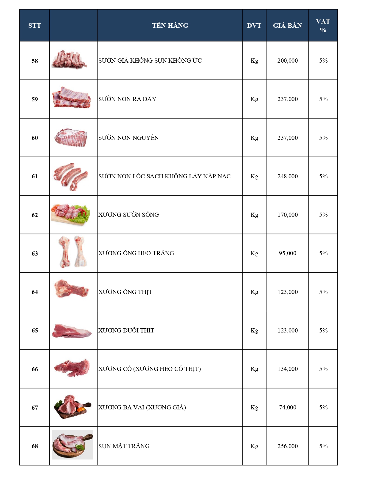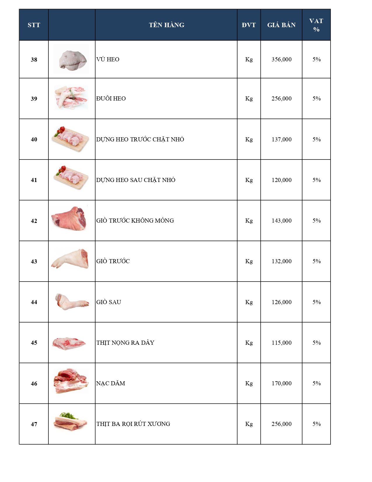 -Bảng giá Thủy hải sản Cao cấp