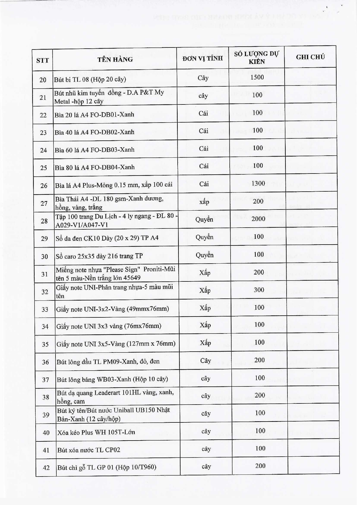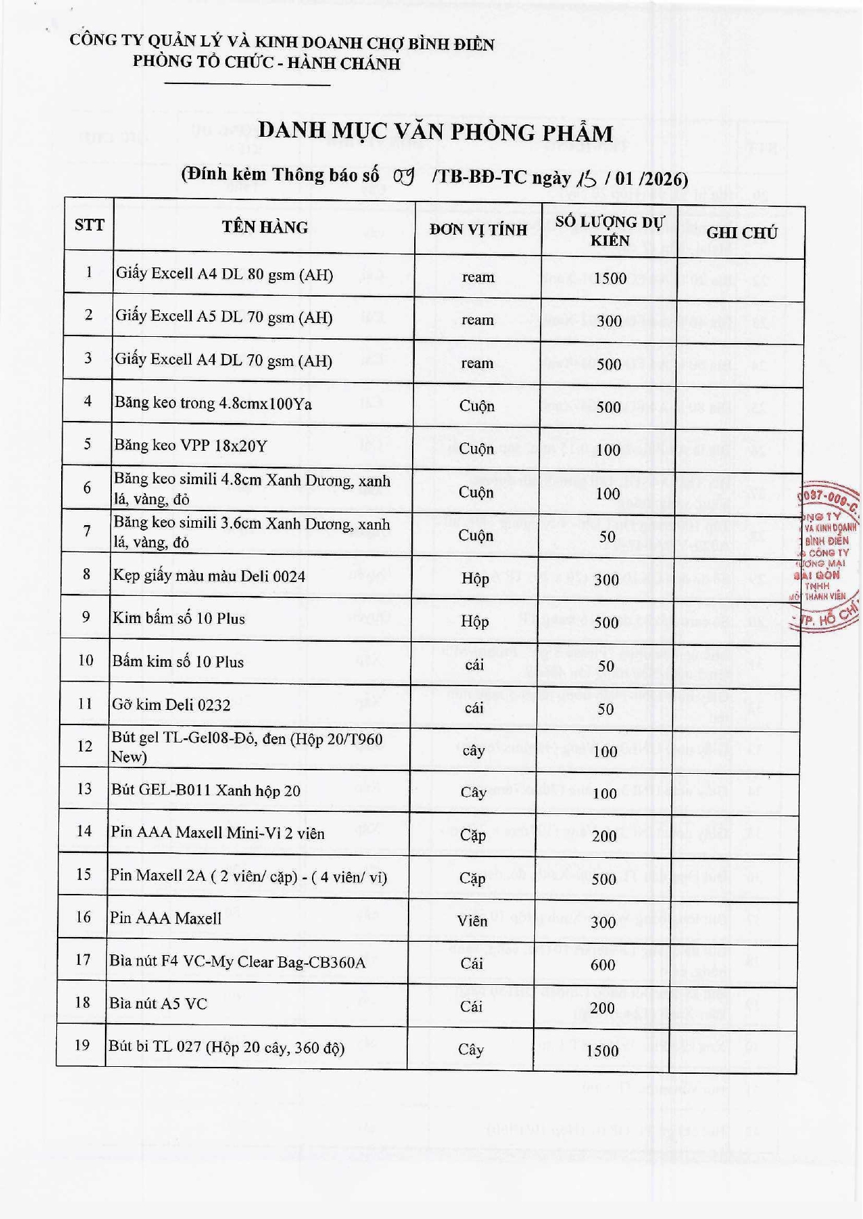 THƯ MỜI BÁO GIÁ Về việc báo giá dịch vụ cung cấp văn phòng phẩm cho Công ty Quản lý và Kinh doanh Chợ Bình Điền