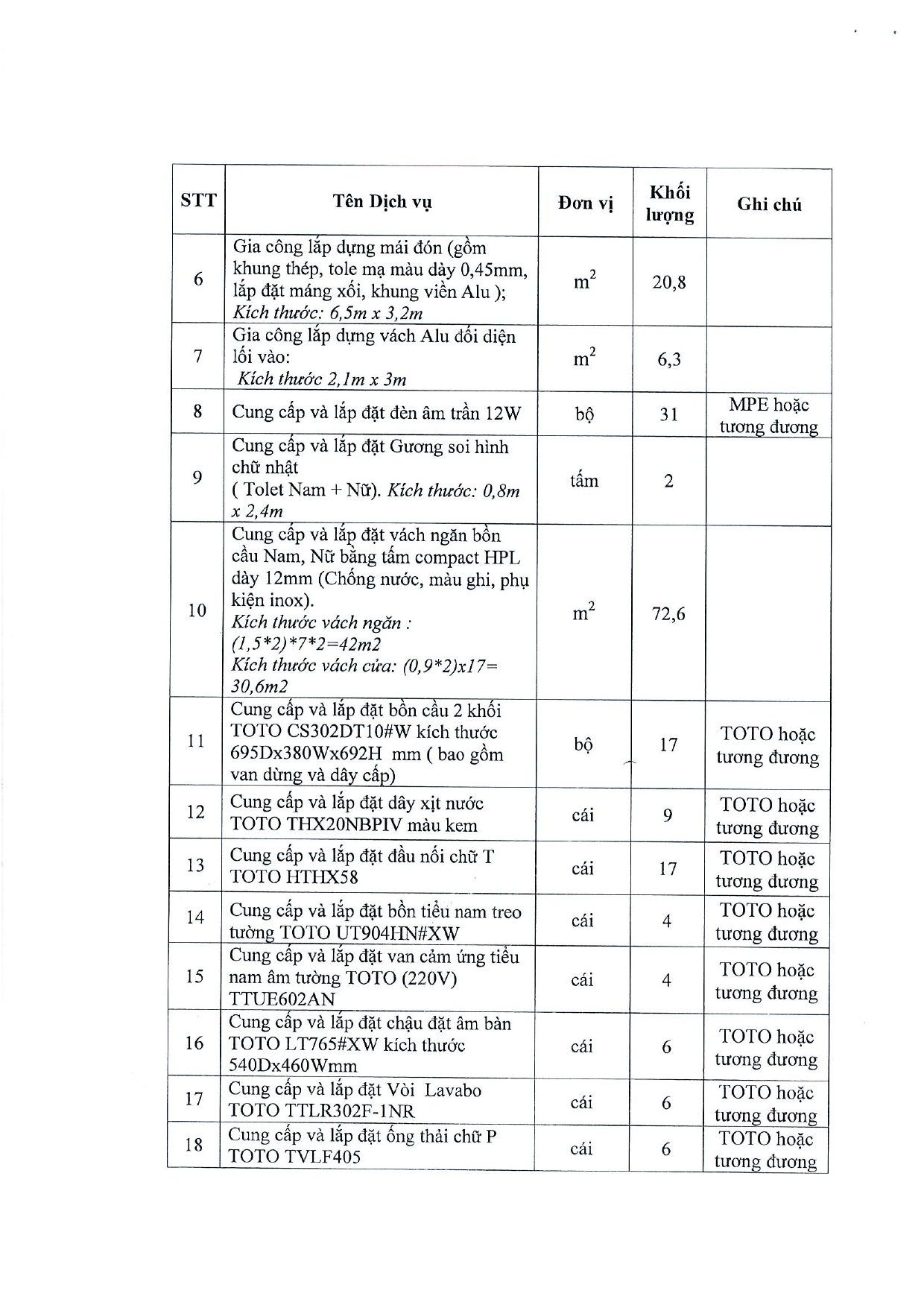 THƯ MỜI BÁO GIÁ Về việc báo giá dịch vụ việc sửa chữa chỉnh trang nhà vệ sinh công cộng số số 04 tại Chợ Đầu mối Nông sản thực phẩm Bình Điền
